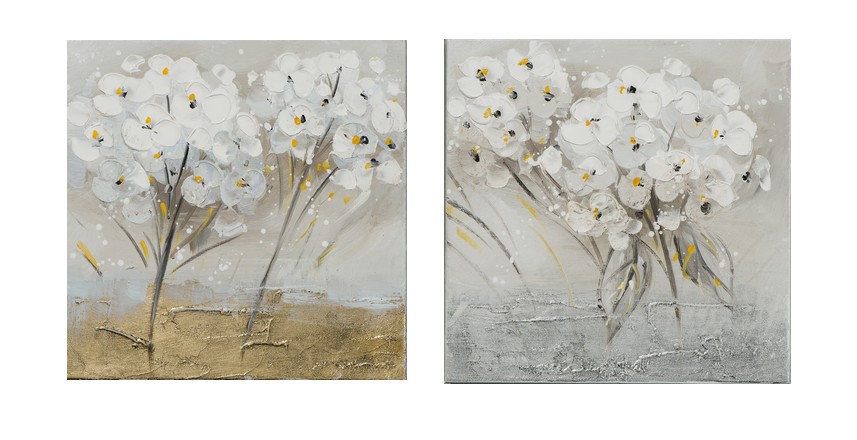 Lot de 2 tableaux FLEURS Blanches peintures acrylique - tons blancs, jaunes, dorés et argentés 2X 25x25cm | Tableaux / Toiles | Pier Import