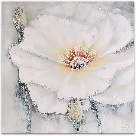 Arte Dal Mondo AS384X1 Fleur Blanche Tableau Floral Modern Peint à la Main sur Toile avec Chassis, Acrylique, Multicolore, 80x80x3,5 cm: Amazon.fr: Cuisine & Maison